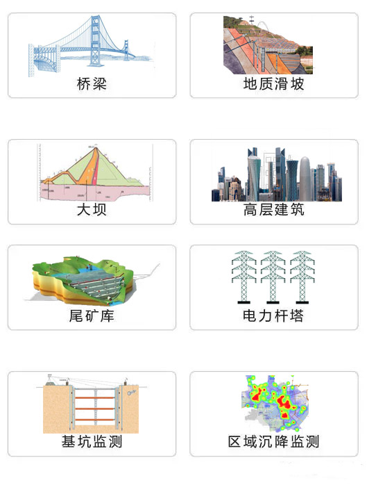 高精度实时形变监测系统集成了北斗/GNSS接收机、风速风向计等多种传感器,由综合管理系统、数据采集系统、数据通讯系统、数据处理系统、分析预警系统组成,实现对桥梁、大坝、电力杆塔、公路边坡、尾矿库、采空区沉降以及路基沉降等建筑结构及地质的高精度三维形变监测。
