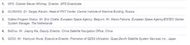 系统和应用方向的C1专门会议(Session C1:PANEL: Status of GPS,GLONASS,Galileo, BeiDou and QZSS),主要介绍了现今全球各大卫星导航系统的运行现状。